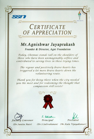 SSN College Appreciates Agnishwar Jayaprakash
