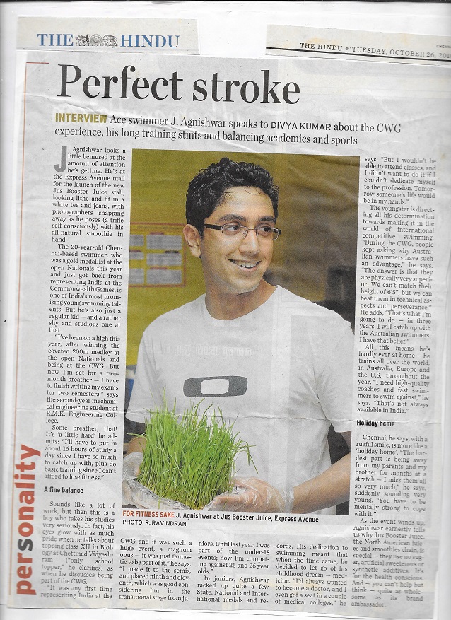 Swimmer Agnishwar Perfect Stroke @The Hindu