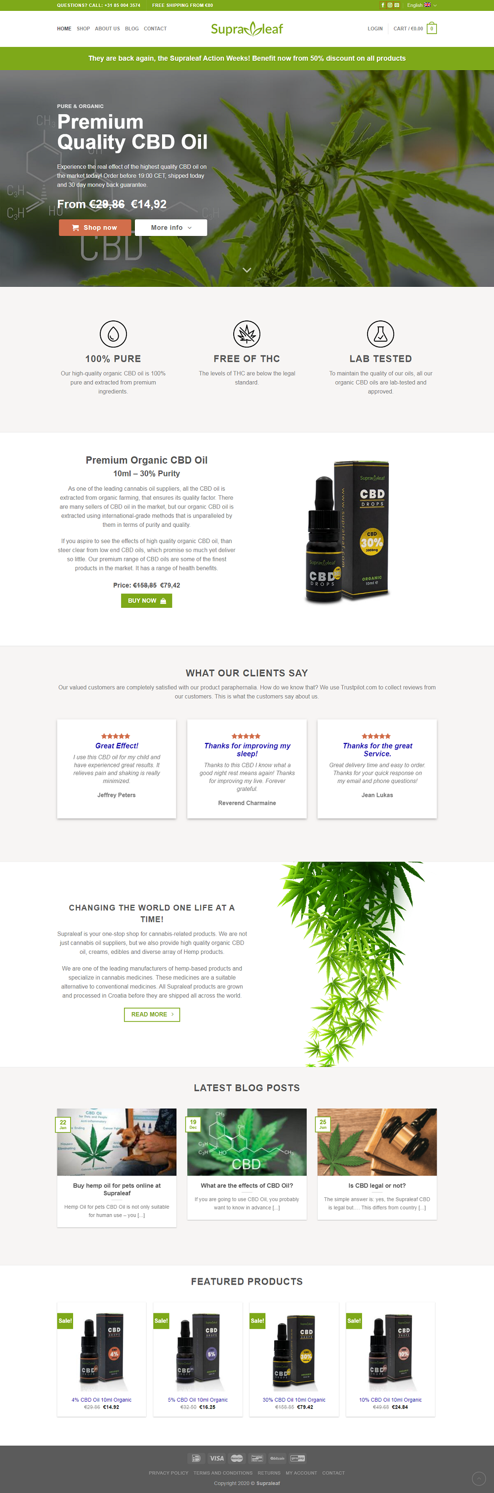 Op zoek naar CBD Olie? CBD koopt u eenvoudig online bij Supraleaf. De Supraleaf CBD Olie is van de hoogste kwaliteit, volkomen legaal en 100% biologisch.