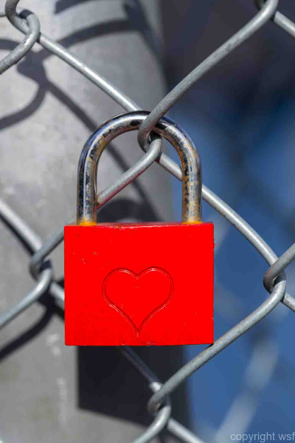 Red heart lock with a fence.