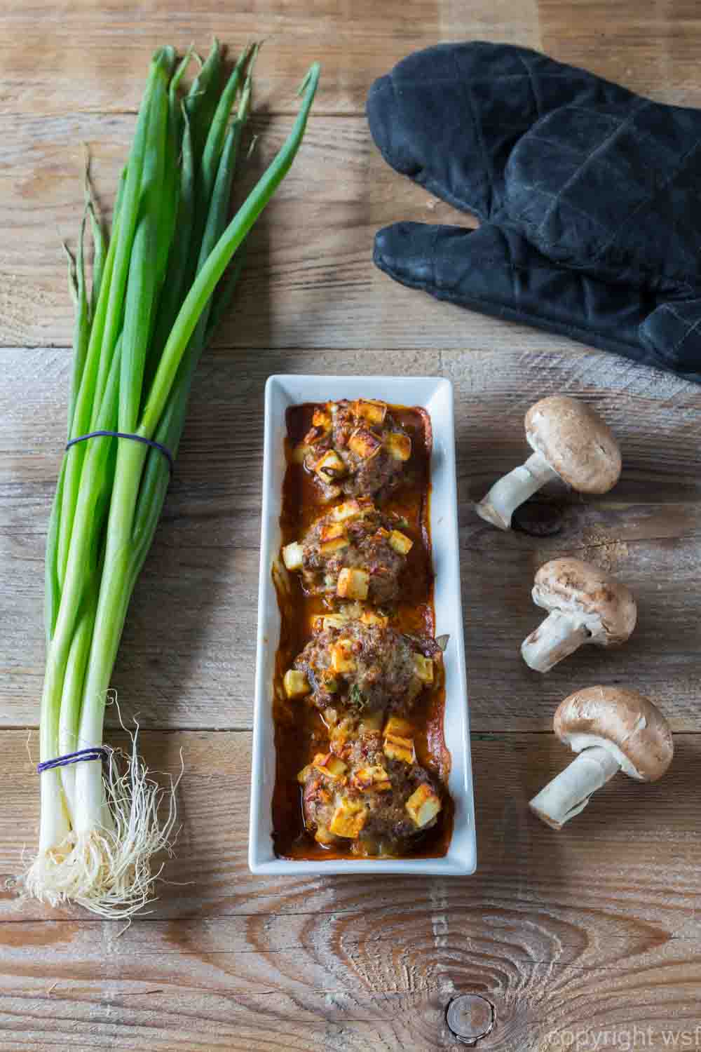 Stuffed mushrooms in a bowl with ingredients