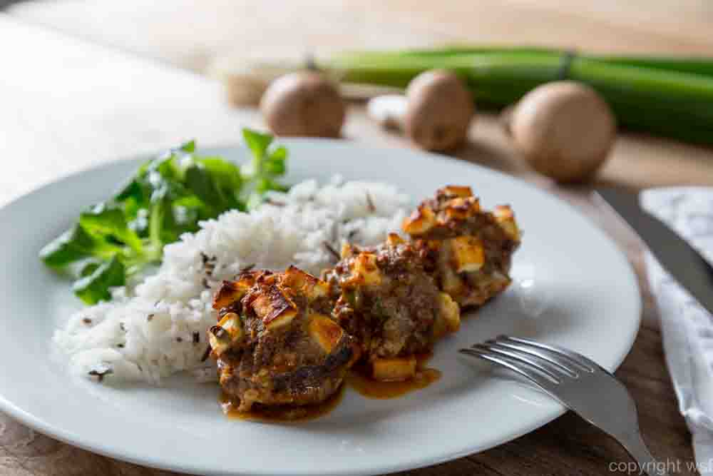 Stuffed mushrooms in a bowl with ingredients
