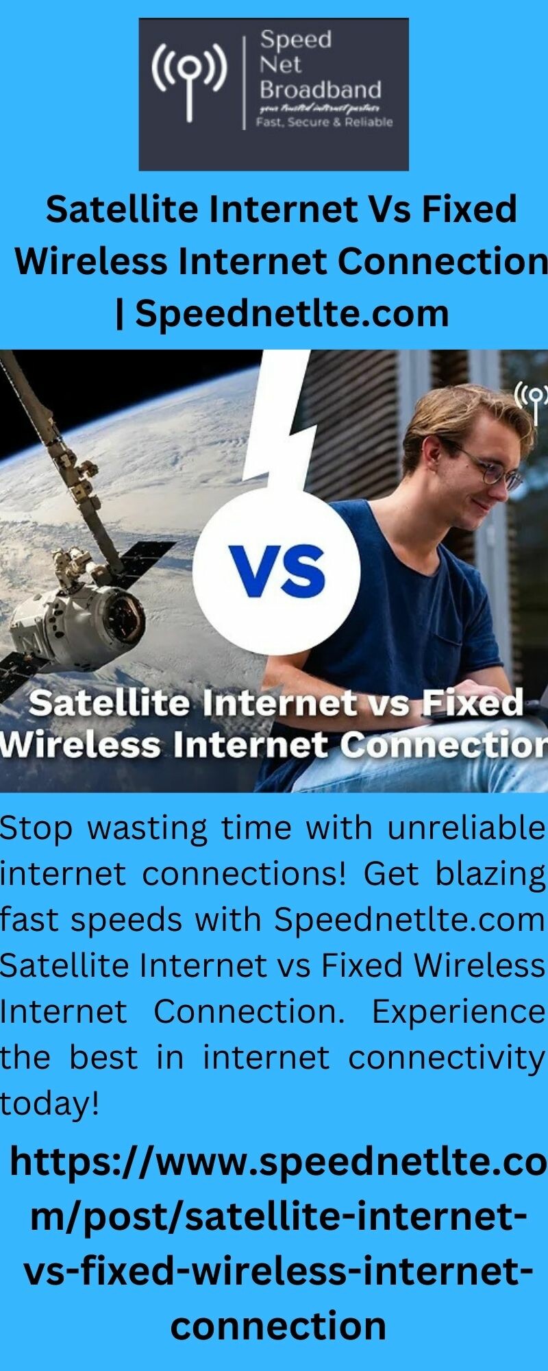 Stop wasting time with unreliable internet connections! Get blazing fast speeds with Speednetlte.com Satellite Internet vs Fixed Wireless Internet Connection. Experience the best in internet connectivity today!