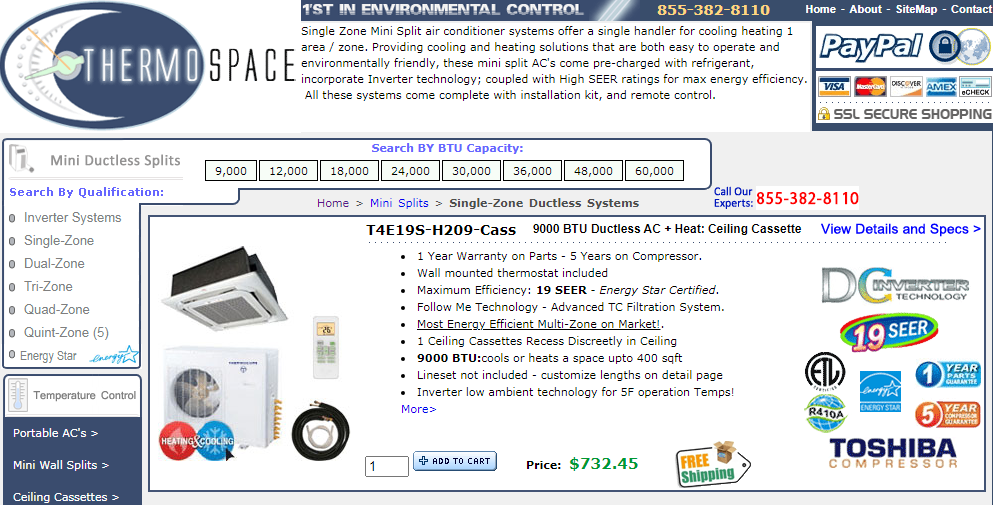 Committed to creating a healthy, safe, and comfortable indoor environment, Thermospace is a supplier and skilled specialist in the field of Environmental Control Systems.  Based out of Oak Park Michigan with branches is Fort Lauderdale and Detroit; we have organized an expanding team of HVAC specialists who combine to offer the expertise and system reference for each individual application.  Our Inventory Includes Portable Air Conditioners, Ductless Split AC's, Space & Patio Heaters, Evaporative Air Coolers and any appliance that operates to serve air temperature management. Rather than marketing a random assortment of products, we exclusively deal with household appliances related to temperature management.  This structure not only gives us the opportunity to offer the largest variety of related appliances but also gives patrons the convenience of browsing a selection that is specific to your application.