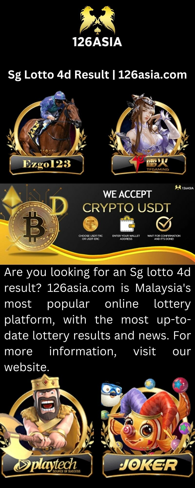 Are you looking for an Sg lotto 4d result? 126asia.com is Malaysia's most popular online lottery platform, with the most up-to-date lottery results and news. For more information, visit our website.