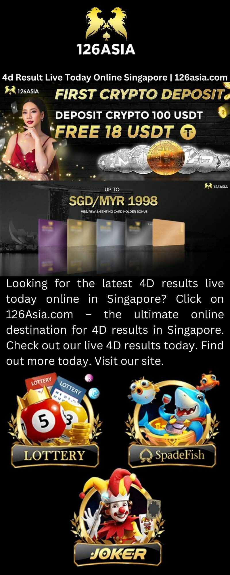 Looking for the latest 4D results live today online in Singapore? Click on 126Asia.com – the ultimate online destination for 4D results in Singapore. Check out our live 4D results today. Find out more today. Visit our site.