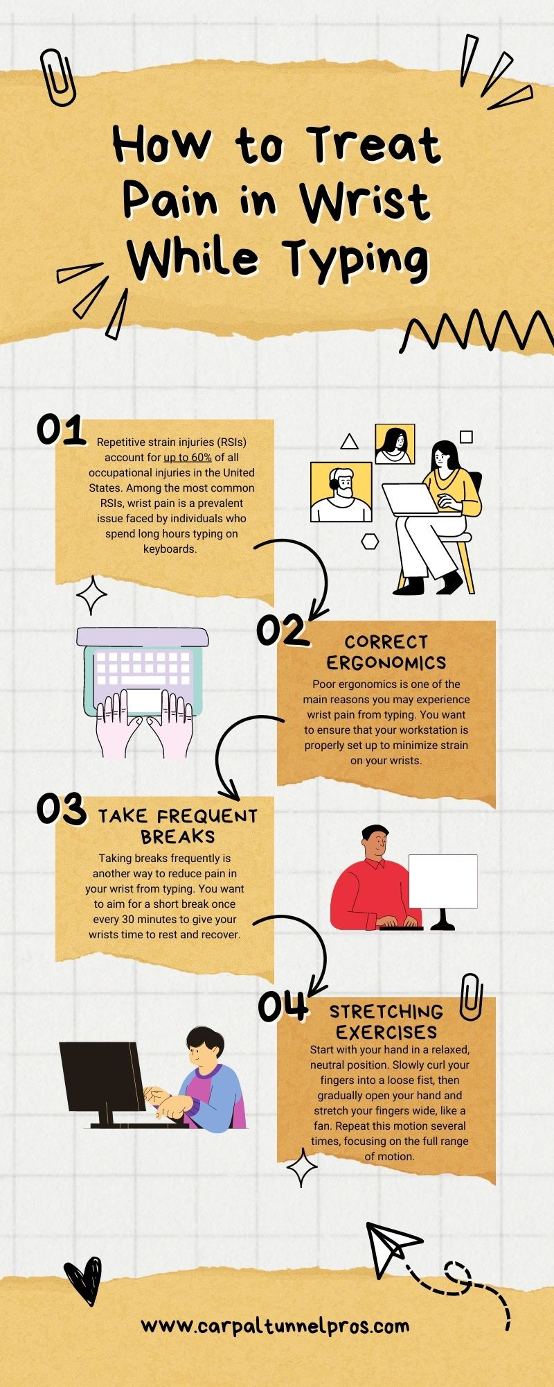 Repetitive strain injuries (RSIs) account for up to 60% of all occupational injuries in the United States. Among the most common RSIs, wrist pain is a prevalent issue faced by individuals who spend long hours typing on keyboards. Visit our website for more Information- www.carpaltunnelpros.com
