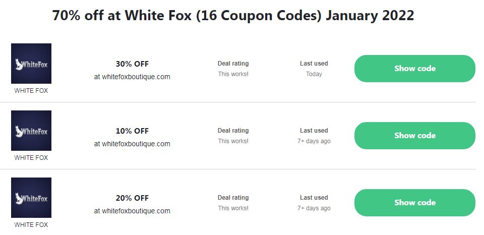 White Fox Boutique Coupon Code