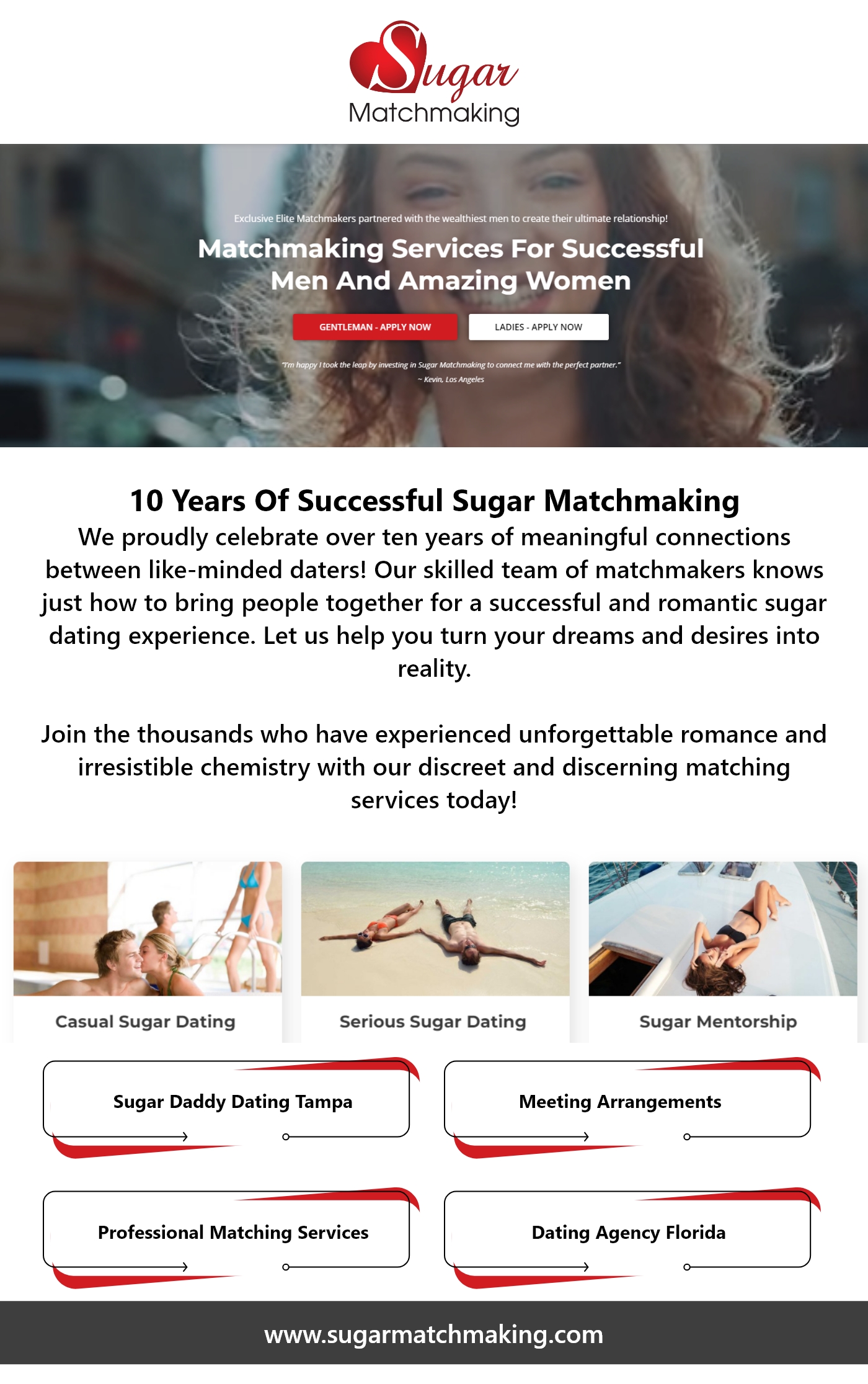 Discover the world of sugar daddy dating in Tampa at sugarmatchmaking.com. Connect with affluent individuals who are looking for attractive companions to share their success and wealth. Join our platform and experience the excitement of sugar dating in Tampa. For more details, please visit our website: