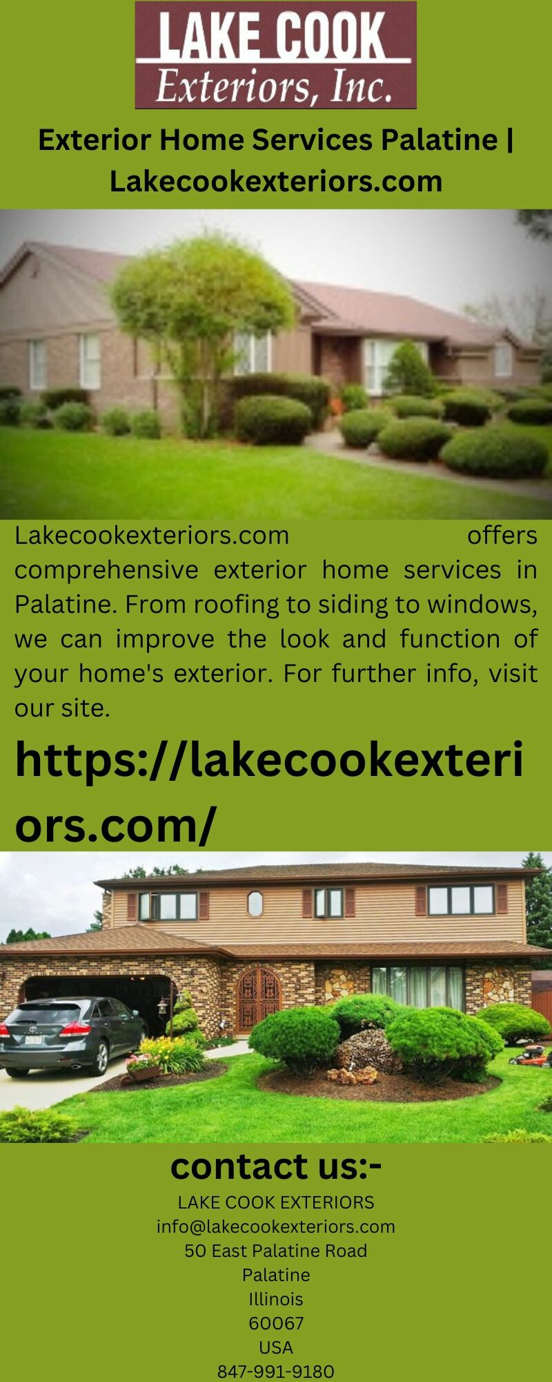 Lakecookexteriors.com offers comprehensive exterior home services in Palatine. From roofing to siding to windows, we can improve the look and function of your home's exterior. For further info, visit our site. https://lakecookexteriors.com/