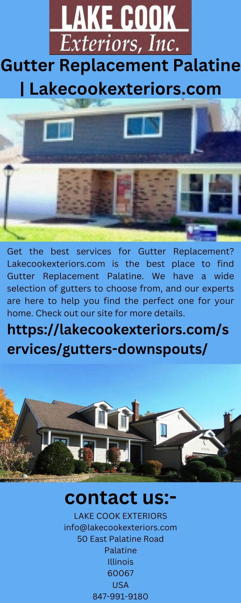 Get the best services for Gutter Replacement? Lakecookexteriors.com is the best place to find Gutter Replacement Palatine. We have a wide selection of gutters to choose from, and our experts are here to help you find the perfect one for your home. Check out our site for more details.