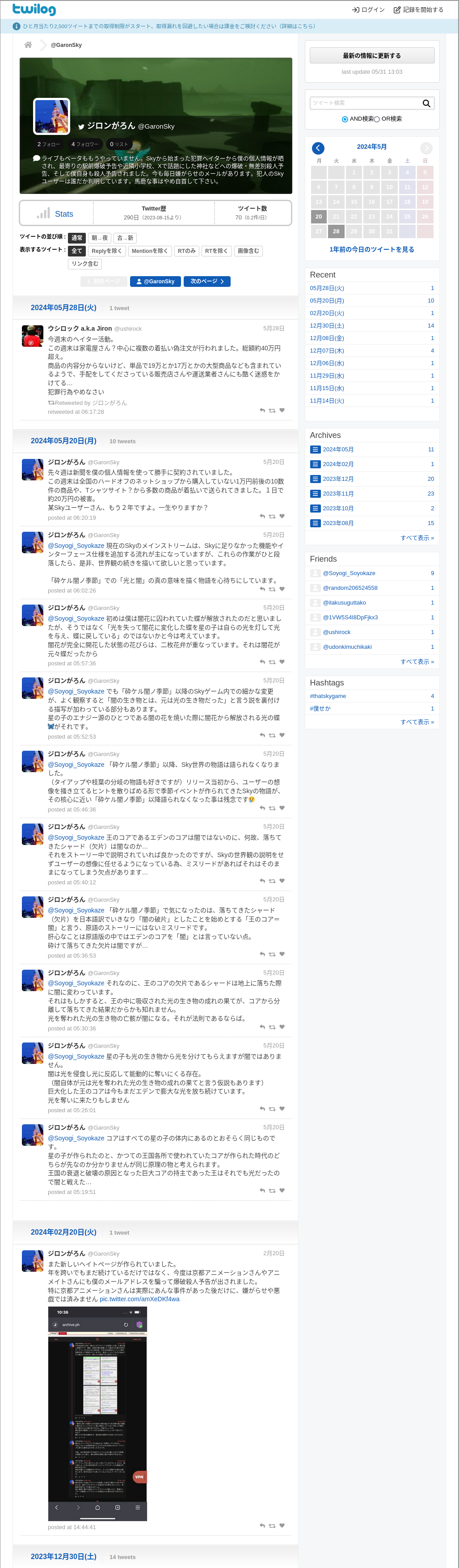@GaronSky https://twitter.com/GaronSky https://bit.ly/3JBCBT3 https://twilog.togetter.com/GaronSky