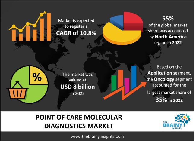The global point of care molecular diagnostics market was valued at USD 8 billion in 2022, growing at a CAGR of 10.8% from 2023 to 2032. The market is expected to reach USD 22.3 billion by 2032.