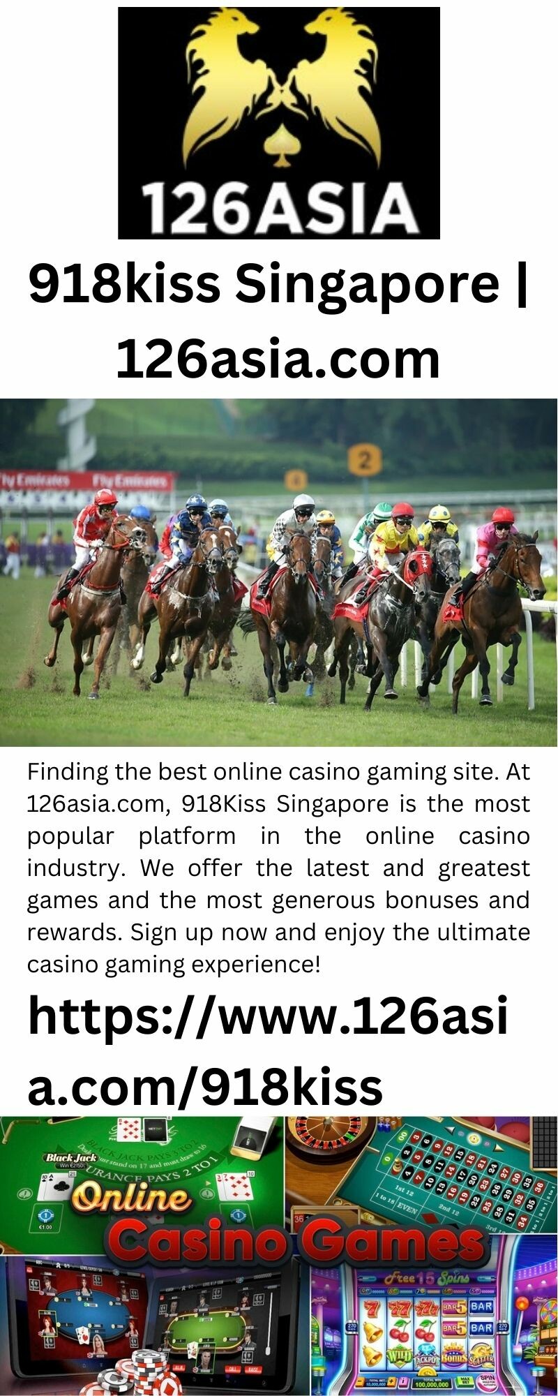 Finding the best online casino gaming site. At 126asia.com, 918Kiss Singapore is the most popular platform in the online casino industry. We offer the latest and greatest games and the most generous bonuses and rewards. Sign up now and enjoy the ultimate casino gaming experience!
