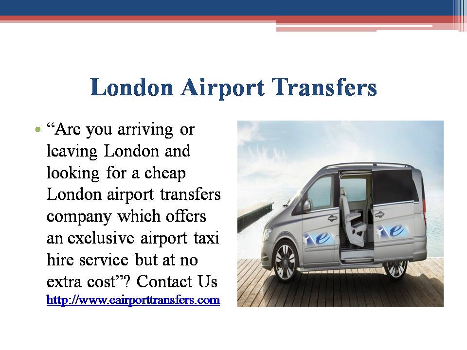 “Are you arriving or leaving London and looking for a cheap London airport transfers company which offers an exclusive airport taxi hire service but at no extra cost”? E Airport Transfers Contact Information http://www.eairporttransfers.com/