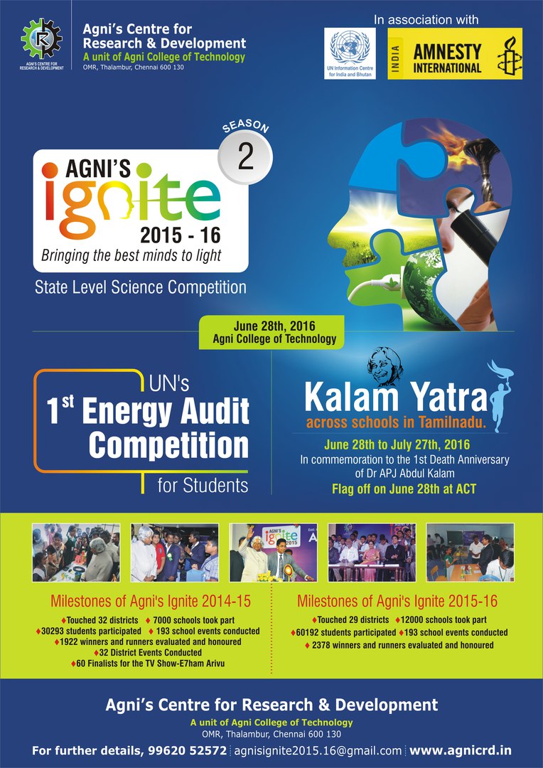 1st death anniversary of Dr. APJ Abdul Kalam Sir! Flag off on June 28th @ Agni College of Technology